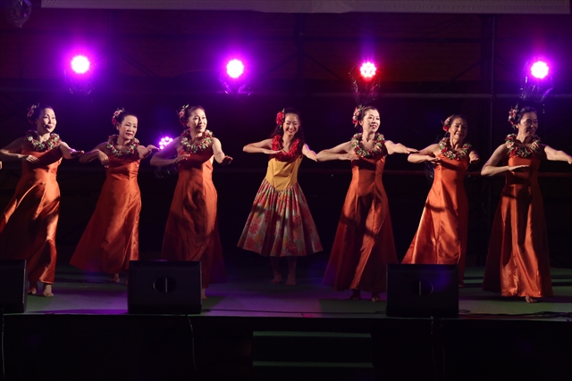 砂浜のステージ、やしの木のステージでは、日本で活躍するハラウの皆様によるとっても華やかなフラパフォーマンスが披露されました!